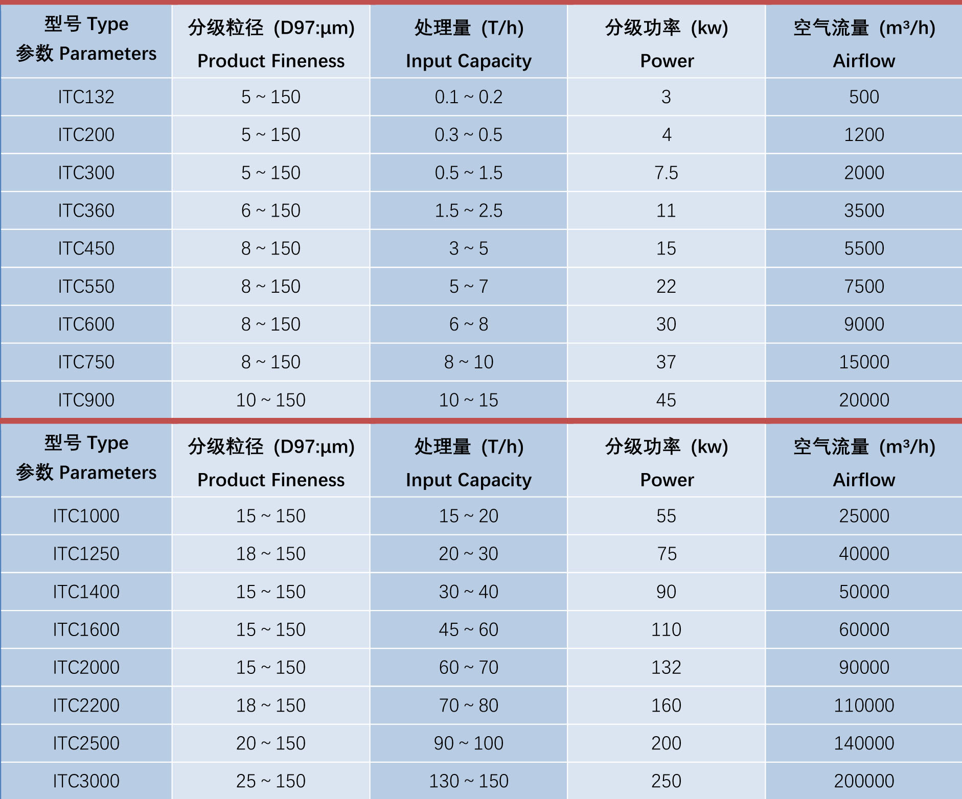 注:1.設備的處(chù)理量(liàng)與物料的性(xìng)質及產品粒度要求有關。 2.產品粒度可調。