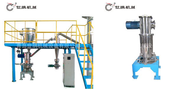 除塵器收集,粗(cū)顆(kē)粒被(bèi)分(fèn)級葉(yè)輪甩出並下降至粉(fěn)碎(suì)區繼續粉碎。