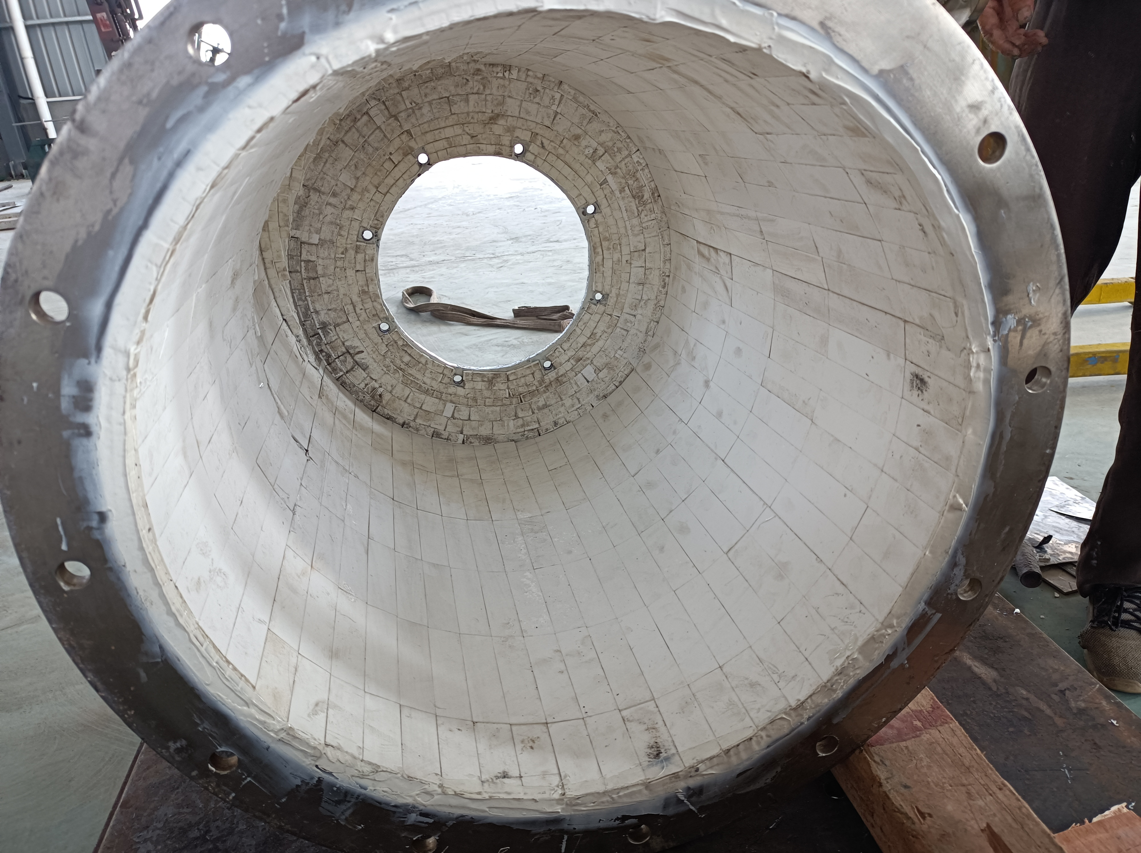 工廠(chǎng)搬遷完畢,工作漸漸回到正軌上,車間裏一片忙碌的景象,卷板車床貼瓷片,