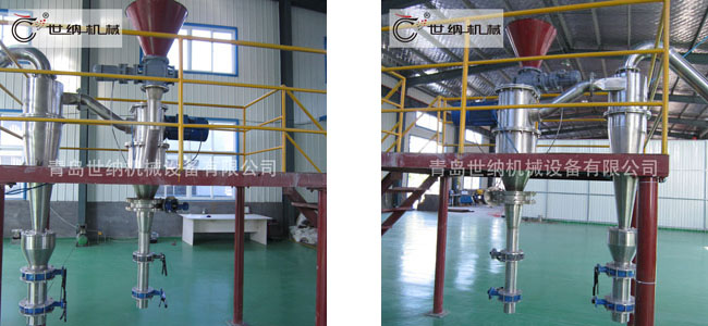 帶部分細顆粒(lì)沿筒壁壁麵旋下,外界二次空氣通過導流(liú)部整流成均一旋流,將混雜或粘(zhān)附於粗顆粒中的細顆粒